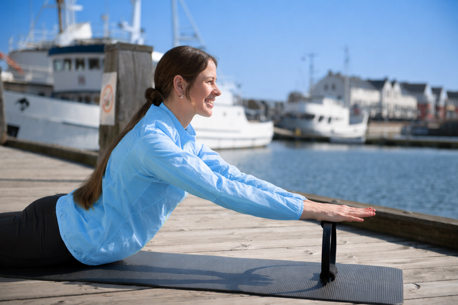 Træningen foregår udenfor på bolværket, så vi kan nyde sommervejret og den smukke udsigt!